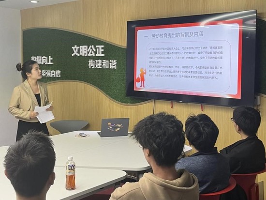 4月23日,学院邀请马克思主义学院研究生邓宇在校园“一站式”学生社区服务中心进行以“新时代数字劳动教育”为主题的素拓讲座。讲座中学生共同探讨了马克思劳动概念,学习了新时代劳动教育的内涵、特征及价值,交流了有关“有教育无劳动”和“有劳动无教育”的问题。