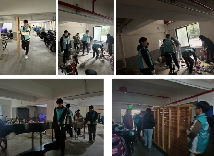 志愿者们分成两组,一组清理学院办公区域,另一组前往社区帮助清理两个老旧车库。前往社区的同志们身着马甲与手套,同社区志愿者相互配合,有的搬运杂物,有的清扫垃圾,大家充分发扬不怕苦、不怕累的优良作风,行在前头、干在实处,将学雷锋活动融入日常、化作经常。活动结束后,学院老师、社区居委会以及居民给予了广泛好评。