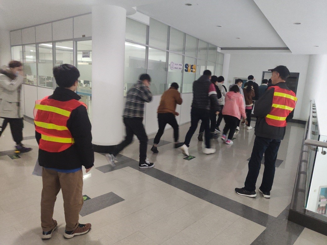 为使广大师生树立“闻警即动”的逃生意识,掌握应急疏散的程序和方法,切实提高师生员工在火灾等紧急情况下的自救互救能力,加强学生的安全防范意识,材料工程学院于11月27日在实训三号楼开展逃生疏散演练。