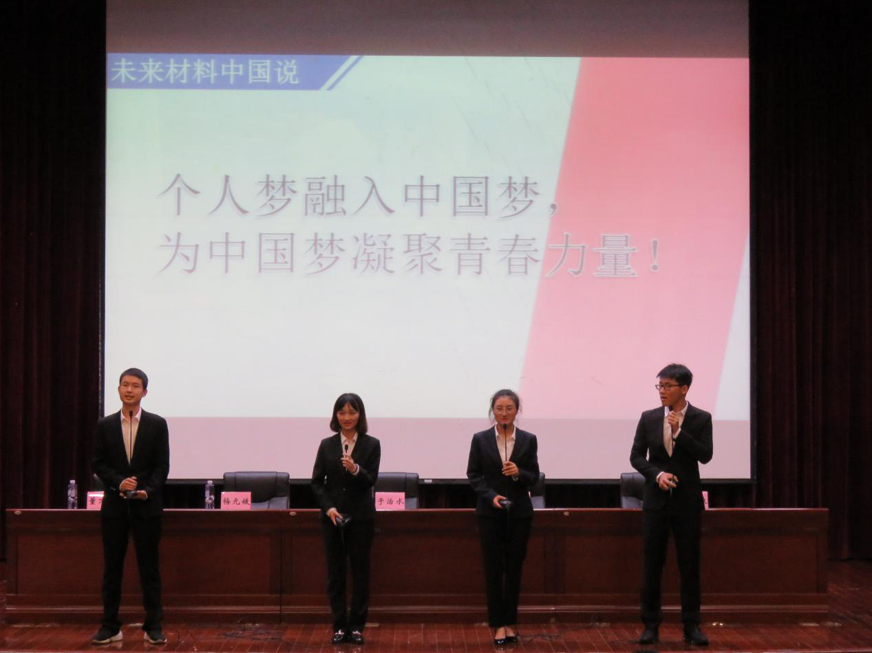 由本科生和研究生学生组成的演讲团队——“未来材料中国说”拉开了大会的帷幕。四位同学结合专业特色及国内航空、冶金、高铁等行业发展现状,以材料人在未来发展中的使命为切入点,带来了一场精彩的演讲。