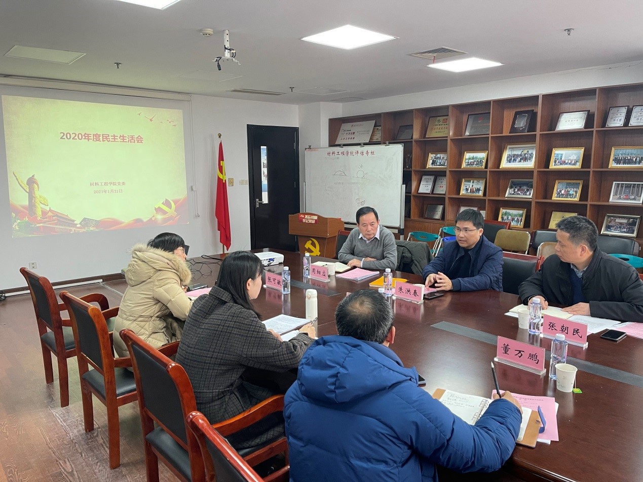 1月21日下午,材料工程学院党委在行政楼1612会议室召开2020年度党员领导干部民主生活会,校党委常委、组织部部长朱洪春,材料工程学院党委党政领导班子成员出席会议,民主党派领导班子成员列席了会议。会议由材料工程学院党委书记张朝民主持。