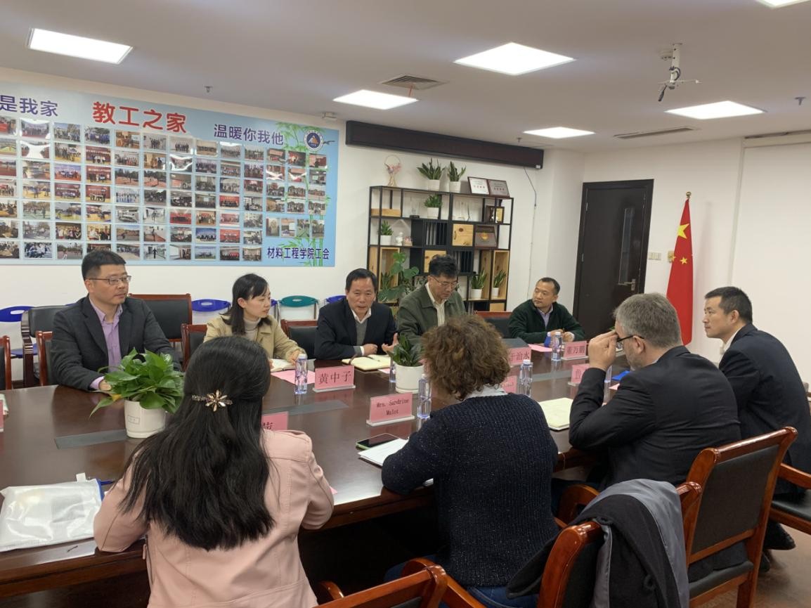 3月30日上午,中核法马通(上海)锆合金管材有限公司(以下简称“中核法马通”)总经理Mr. Thomas Holst、副总经理Mrs. Sandrine Mulot、副总经理鲁东辉等一行来访材料工程学院。材料工程学院党委副书记、院长周细应,上海市激光先进制造技术协同创新中心执行主任于治水,党委副书记黄中子,副院长董万鹏,上海市激光先进制造技术协同创新中心教授张培磊,学生工作办公室主任沈园花,就业辅导员陈珺等参加了会谈。