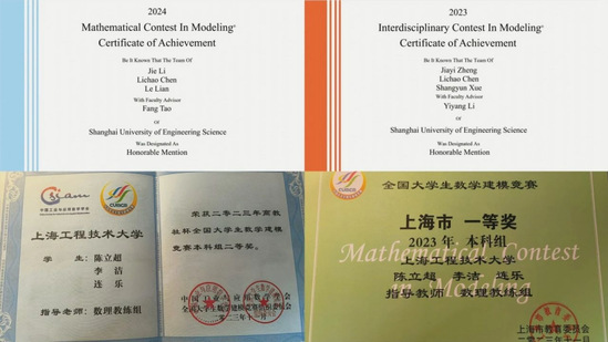 陈立超不仅在学业上取得了优异的成绩,绩点稳居年级第一(GPA3.85),更在各类科研竞赛中屡获佳绩。在11月30日结束的2024年全国大学生电装技术创新大赛中,陈立超作为团队骨干成员,凭借出色的创新思维和技术实力,带领团队荣获团体二等奖,再次展现了他在科研竞赛方面的卓越表现。陈立超先后荣获2023高教社杯全国大学生数学建模竞赛二等奖,2024年美国大学生数学建模竞赛二等奖,第39届全国部分地区大学生物理竞赛(上海赛区)非物理类B组三等奖。