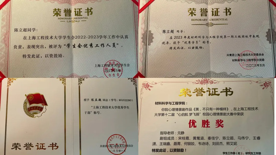 陈立超还积极投身学生工作和志愿服务,担任校学生会学术文化部负责人,精心策划和组织多项学生喜爱的活动,参加学院科学展演活动的科普宣讲。他还积极参与垃圾分类志愿服务和学院务农劳动实践,以实际行动践行环保理念和服务同学的承诺。陈立超深知红色文化传承的重要性,积极参与红色文化分享会,将抗日精神和雷锋精神等红色文化传播到身边的每一位同学,展现了新时代青年的使命与担当。