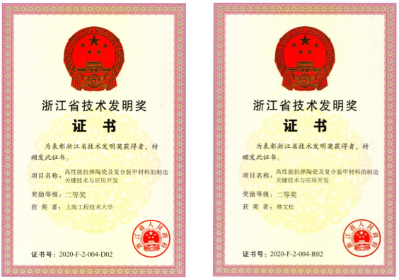 近日,浙江省人民政府公布了2020年度浙江省科学技术奖的获奖名单,材料工程学院林文松教授与合作单位浙江立泰复合材料股份有限公司的成果“高性能抗弹陶瓷及复合装甲材料的制造关键技术与应用开发”喜获浙江省技术发明二等奖。