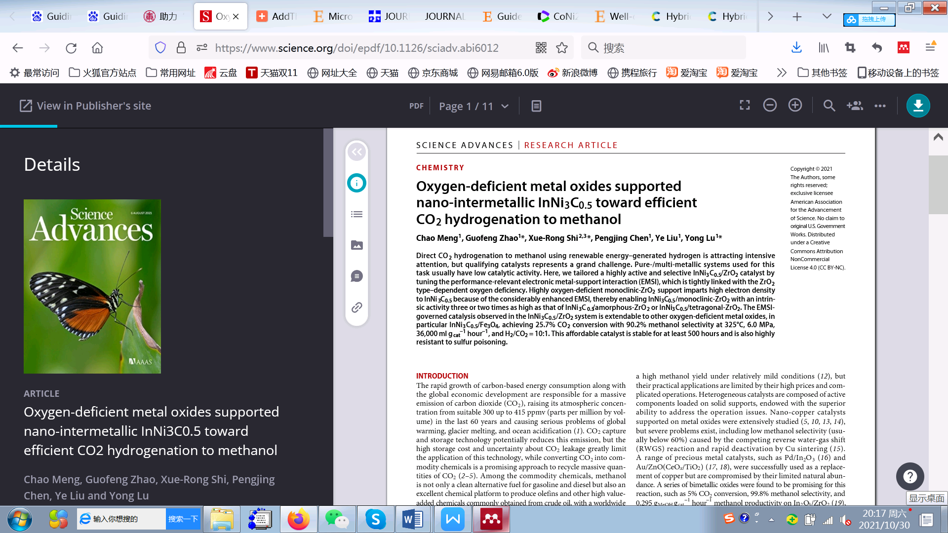 近期,我校材料工程学院史雪荣副教授与华东师范大学化学与分子工程学院、上海市绿色化学与化工过程绿色化重点实验室路勇教授课题组在二氧化碳CO2加氢高效合成甲醇的研究中取得重要进展,相关成果“Oxygen-deficient metal oxides supported nano-intermetallic InNi3C0.5 towards efficient CO2 hydrogenation to methanol”发表于Science出版集团子刊《Science Advances》上(2021, 7(32), DOI: 10.1126/sciadv.abi6012)。博士生蒙超为论文第一作者,bw·西汉姆联史雪荣副教授、华东师范大学路勇教授、赵国锋副研究员为论文共同通讯作者。