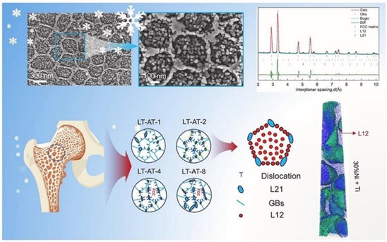 马盼教授还指导研究生方亚成、谢凯强在中科院二区期刊《Journal of Materials Research and Technology》(2025,34:819-831,IF=6.6)上发表研究成果“Obtaining strength ductility combination in a laser additive manufactured (FeCoNi) 86Al7Ti7 high entropy alloy at cryogenic temperature.”,发现面心立方高熵合金通常在低温下具有更高的强度和韧性。指导研究生杨红在中科院二区期刊《Journal of Central South University》(2025,32:1167-1178,IF=4.4)上发表了研究成果“Microstructure and mechanical properties of additively manufactured FeCoCrMnNi high-entropy alloy composite after aging”,提出以 CoCrFeMnNi 高熵合金粉末为基体,以NiCoFeAlTi 高熵金属间化合物粉末为高熵增强体(HER),采用选择性激光熔化技术制备了CoCrFeMnNi/NiCoFeAlTi HEACs。
