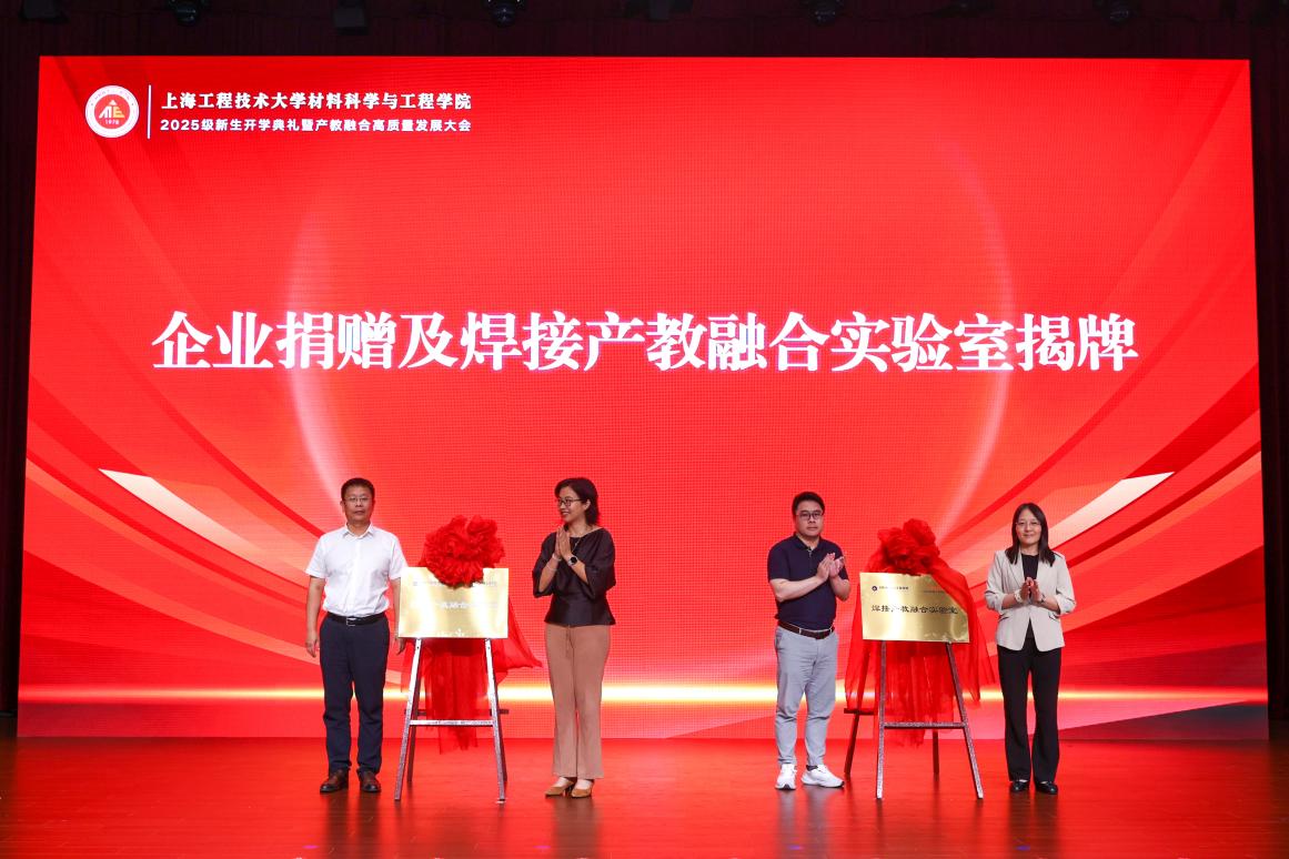 校企共建环节,上海沪工焊接集团与上海通用重工集团向学院捐赠实验设备,用于共建焊接产教融合实验室。企业代表与学院党委书记胡建平、院长李军共同为实验室揭牌,标志着校企合作进入资源共享、平台共建的新阶段。