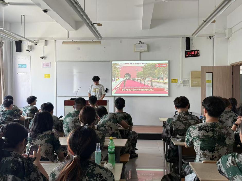 学院组织全体新生集中观看了此次阅兵直播。随着阅兵仪式启动,军训新生们不约而同挺直脊背。随着阅兵中出现的整齐方阵与强大武器心潮澎湃,每个人都为祖国的强大而感到无比自豪。