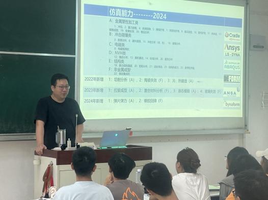 在授课中王斌技术主管在为学生详细阐述了企业最新专业CAE仿真技术发展趋势和研究案例,还结合个人学习、工作经历,着重强调了专业知识的储备与个人素养提升的重要性,在课堂上和学生们积极进行互动交流,耐心地解答学生们对于CAE仿真案例中的问题和求职就业方面的疑惑,为上课学生们提供了切实可行的指导。