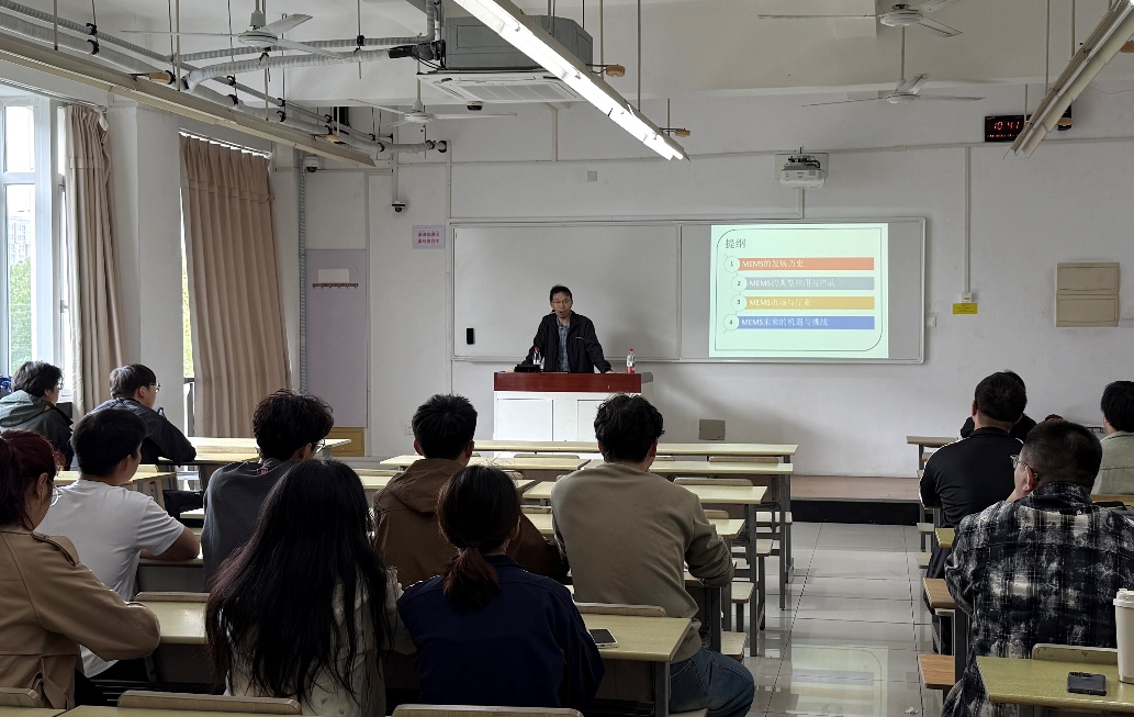为了让学生接触到半导体领域前沿科技应用成果,熟悉相关的理论技术知识脉络,10月31日,《半导体材料与器件》课程邀请了来自临港实验室的薛宁研究员走进课堂,为集成电路科学与工程专业的同学们讲授了MEMS基础理论与多元化应用场景。