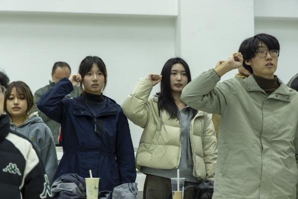颁奖授牌环节仪式感十足,胡建平与李军为首届优秀实践单位授予“焊接产教融合实践基地”铜牌,既是对企业支持校企合作的致谢,也彰显了深化产教融合的共识。刘倩与刘淑梅为首届优秀企业导师颁发证书,见证了校企协同育人的实效,赢得现场阵阵掌声。最后,全体学子高举右拳庄严宣誓,“在即将开启的焊接产教融合实践之旅中,我们庄严宣誓:。。。”誓言铿锵有力、掷地有声,回荡在会场的每一个角落,既饱含着学子们对专业的热爱、对实践的热忱,更深刻诠释了 “勤奋、求是、创新、奉献” 的校训精神,字里行间满是青年一代投身焊接行业、锤炼过硬本领、助力产业高质量发展的坚定信念与青春担当。