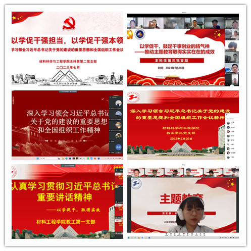 为扎实推进学习贯彻习近平新时代中国特色社会主义思想主题教育,近日,材料科学与工程学院全体党支部采用线上会议形式围绕学思想、强党性、忠诚为党护党、全力兴党强党进行专题学习讨论,深入学习领会习近平总书记关于党的建设的重要思想、全国组织工作会议精神以及习近平总书记对“以学促干”提出的明确要求。