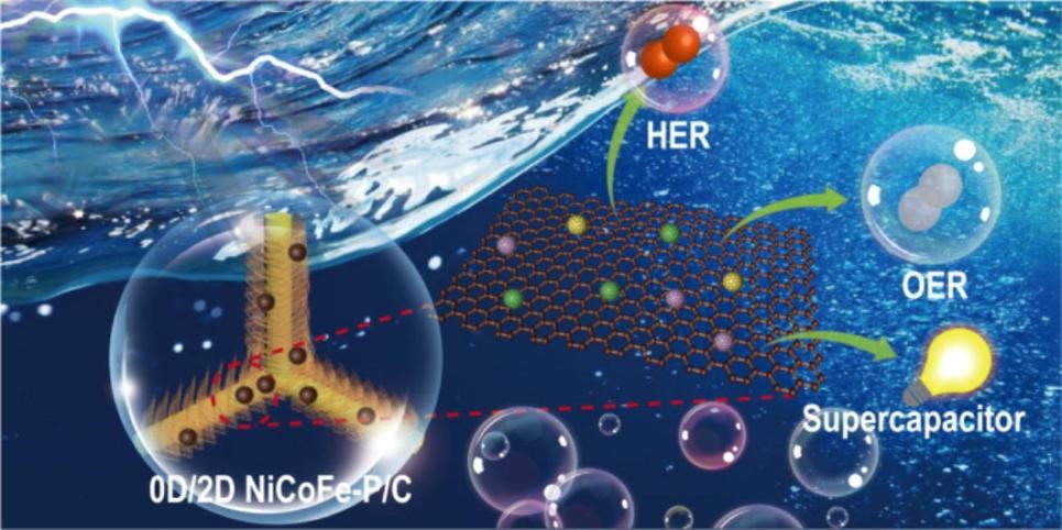 0D NiCoFe-P量子点锚定2D多孔碳实现高效电催化和高能量超级电容器