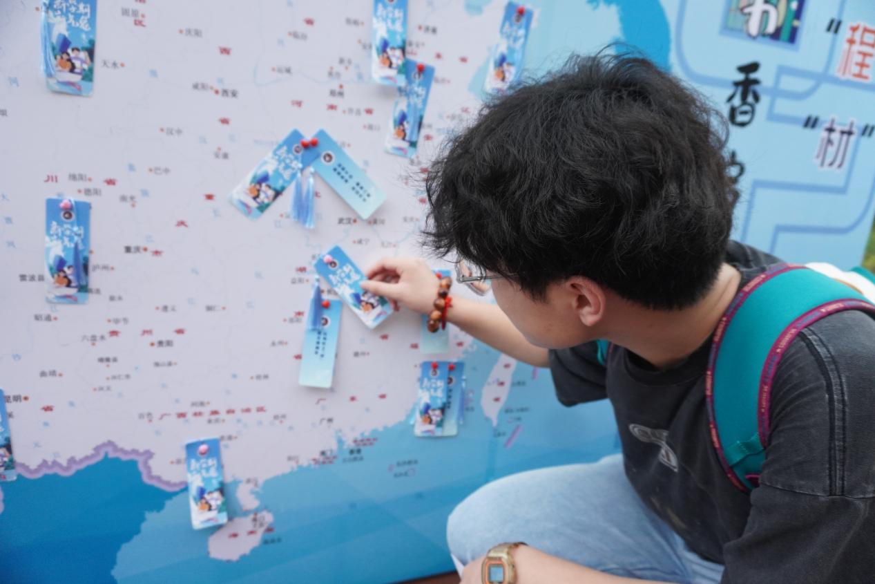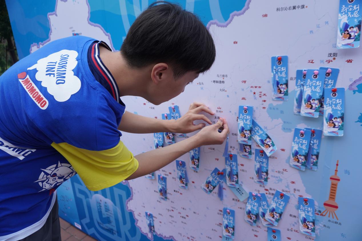 为了欢迎学院新同学,学院开展 “一路‘程’‘材’·书香启航”特色活动,在迎新点放置了包含所有新生家乡的中国地图板,萌新们把对未来的祝福语和愿望写在定制书签上,悬挂在地图上的家乡所在处,寓意从四面八方来到工程大,泛舟学海后奔赴未来。
