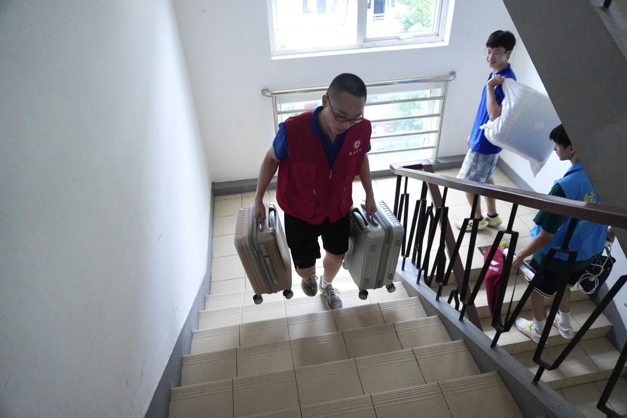 宿舍园区内,学院党员、志愿者为新生搬运行李,指引方向,分工合作,井然有序,他们用行动诉说热情,欢迎suesers成为程园一份子。党员先锋岗的志愿者为新生提供切实的帮助和暖心的服务,并向新生介绍入党的基本条件、入党流程等内容做好入党启蒙教育。