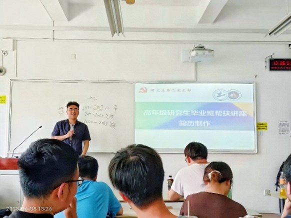 就业引航,圆梦发展。支部党员胡学帅同志曾任院学生会主席、班团支书,曾获华为杯研究生数学建模大赛全国三等奖、“互联网+”创新创业大赛上海市铜奖、红旗团支部书记标兵等荣誉,其求职就业先进事迹被“长三角热线”报道,已多次在学院内传授成功求职经验,同时一对一帮扶同届和下一届学弟学妹们介绍岗位、修改简历;支部党员马彩玉同志作为年级第一个签约的同学,站在讲台分享求职经历,从工作介绍、简历修改、面试指导到成功签约全程帮扶班级多名同学。
