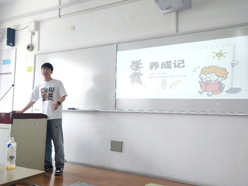 学业领航,助梦成长。支部党员徐文虎同志曾获研究生国家奖学金、上海市优秀毕业生、学习之星等荣誉称号,从自身经历出发,引导学生全面认识自己,把握现在,利用“学霸养成记”专题分享会、一对一科研指导来帮扶身边的同学们;支部党员罗钟毅、胡志国、程文浩等同志积极主动在实验操作、文献阅读、科研规划等方面进行开讲,帮扶低年级的学生,助力学弟学妹们学业进步。